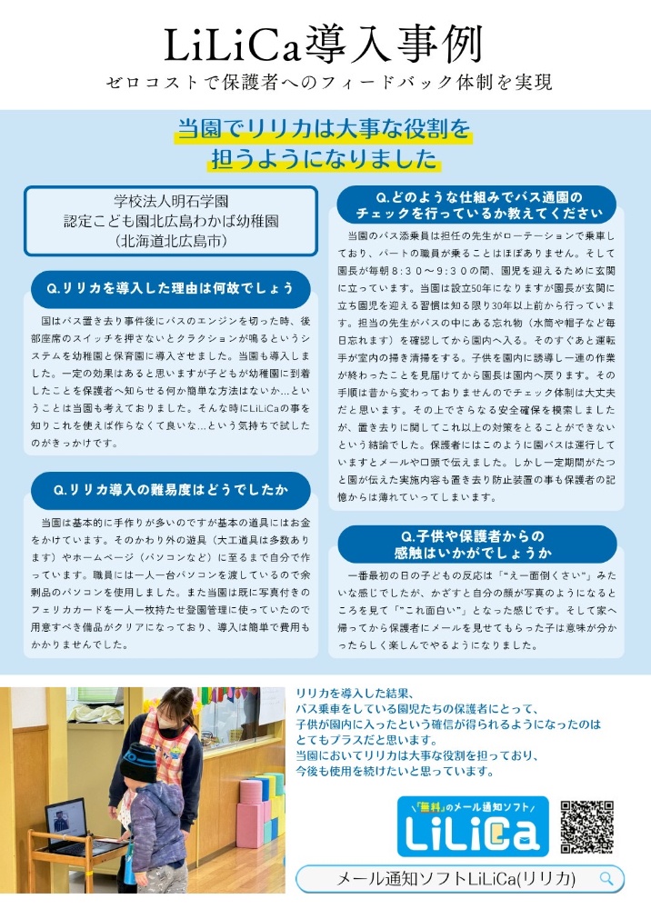 保育施設・塾などへ、LiLiCaの導入を(タップするとLiLiCaのページへリンクします)