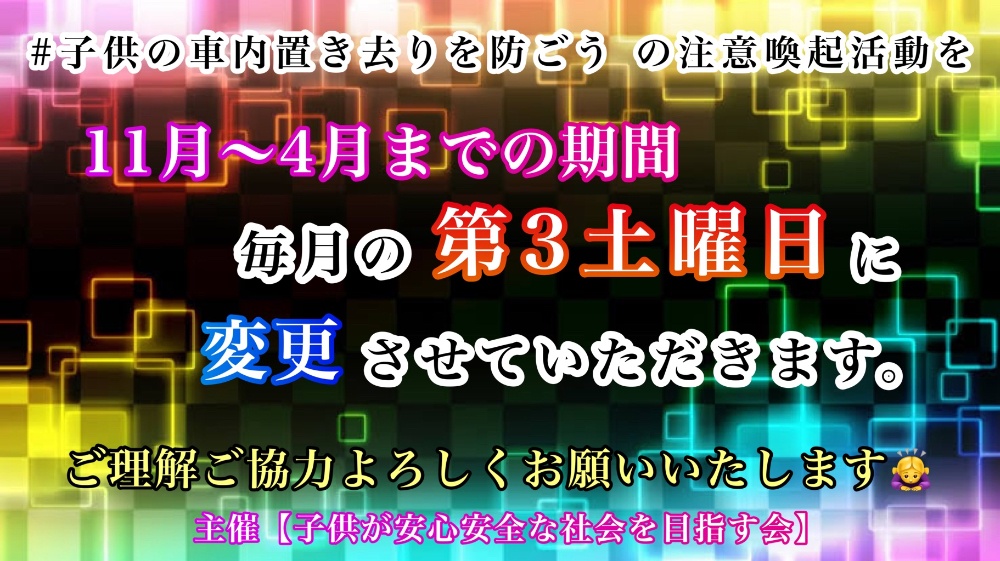 第3土曜日#子供の車内置き去りを防ごう 呼びかけ活動を行ってます!